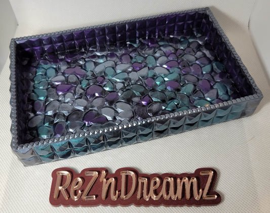 Purple, Silver, and Green Tray, Rectangle Jewelry Tray, Mother's Day, Gift