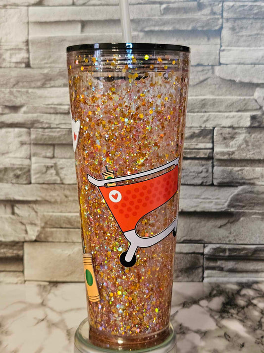 Sips and Trips Snow Globe Tumbler - Custom Double-Walled Tumbler Perfect for Keeping Your Summer Drinks Cool!